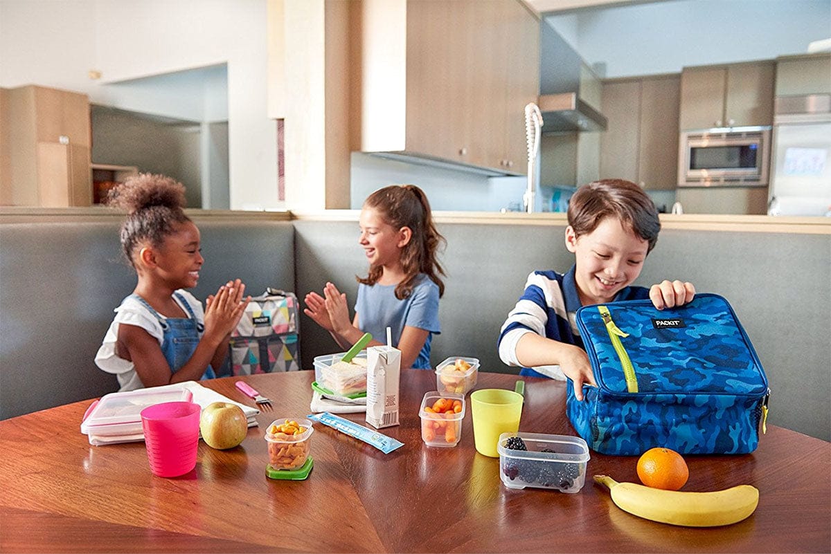 The old-school lunch box is getting PackIt?s cool tech twist! The Freezable Classic Lunch Box is the only horizontal lunch box that chills healthy food for hours. Freezable gel is built into the lunch box so you'll never waste money on ice packs again. The lunch box's top-load design makes it easy to pack flat containers like bento boxes. A buckle handle clips onto totes, backpacks or sports bags for convenient travel to and from school, daycare and sports activities. There's also a mesh pocket fits a small water bottle and a slim zip pocket.