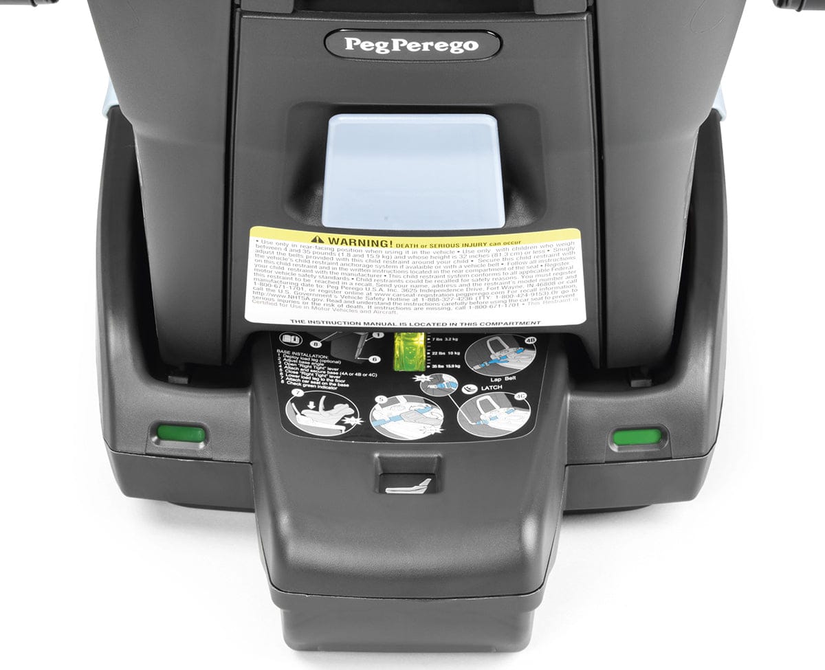 • Base is equipped with an innovative system which easily and securely locks the base in place for added stability with either LATCH strap or vehicle's seat belt.