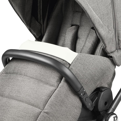 - Comfort and functionality are guaranteed by a roomy seat, a 5-point harness and an eco-leather front bar that opens and closes with ease.
