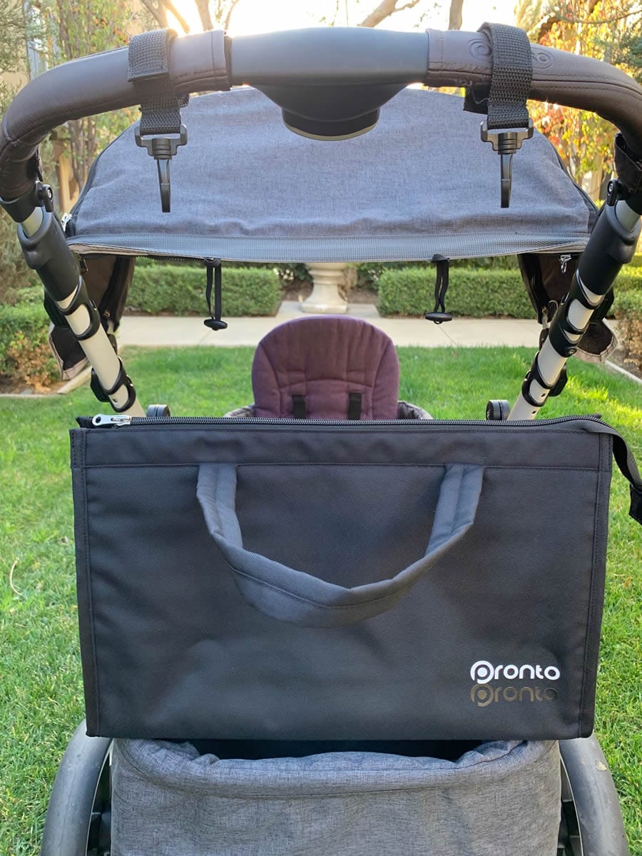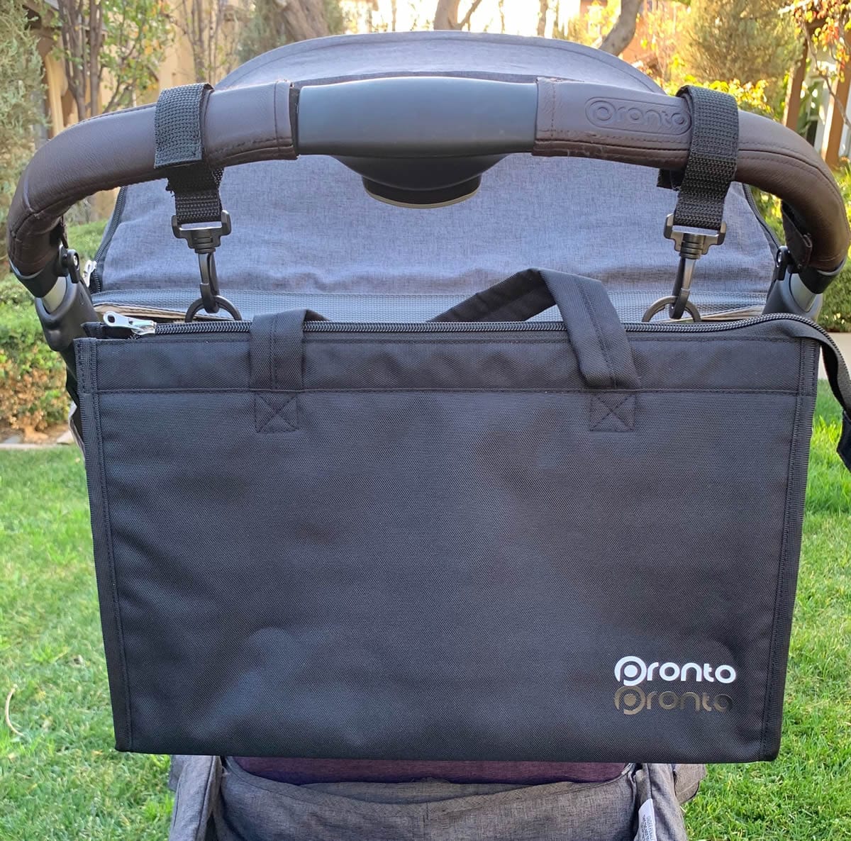 Spacious interior with removable velcro straps to attach to the handle bar.