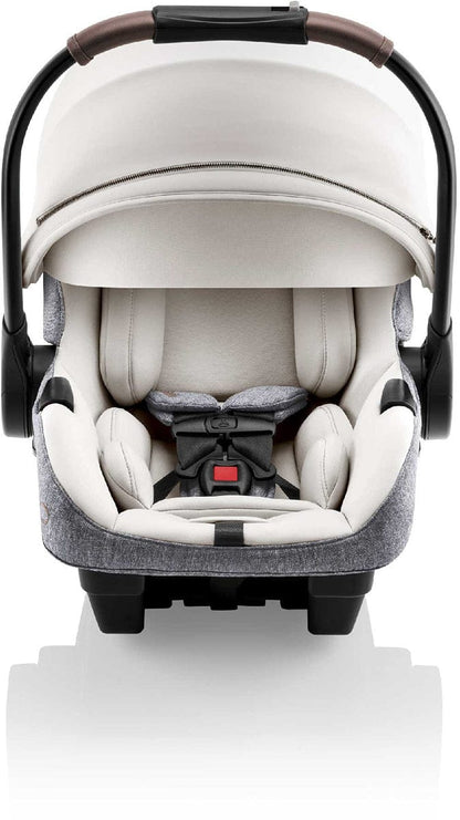 Refined Look, Beauty in the Details: This infant car seat features a timeless design with woven accents and a soft mahogany leatherette handle grip