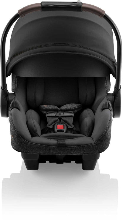 Refined Look, Beauty in the Details: This infant car seat features a timeless design with woven accents and a soft mahogany leatherette handle grip