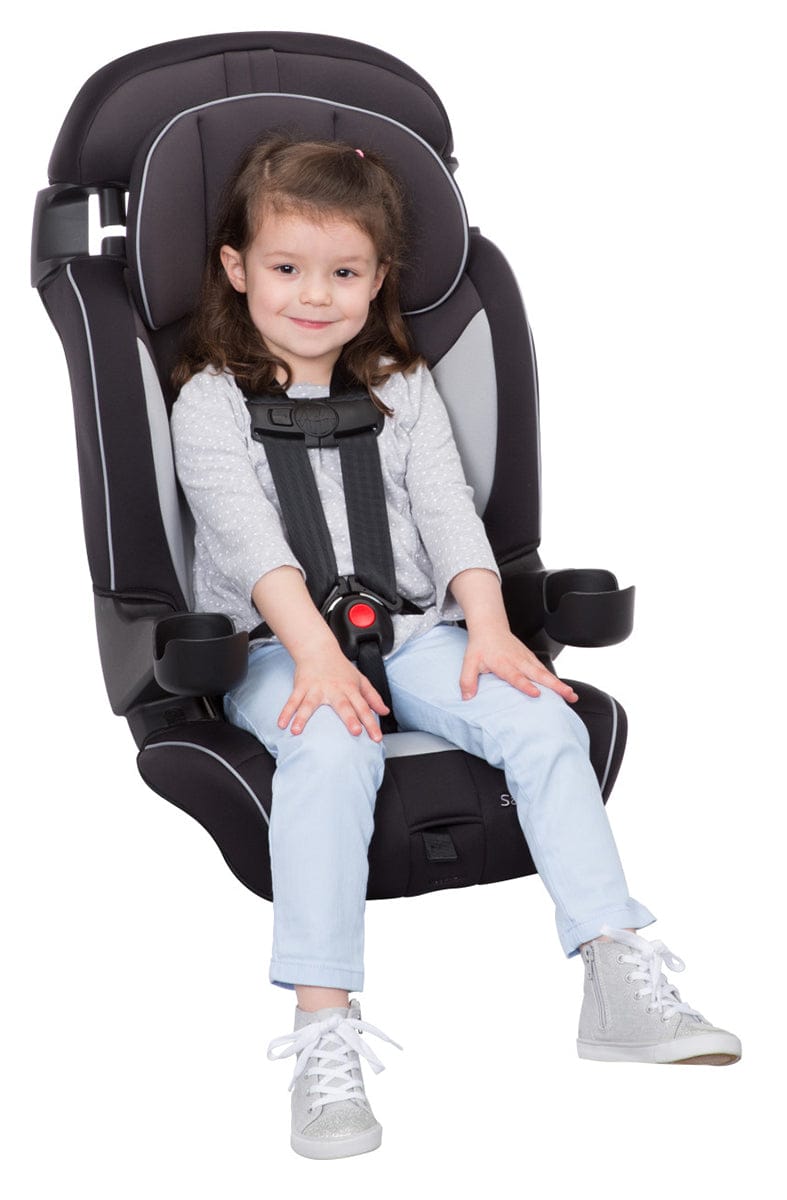The Safety 1st Grand 2-in-1 Booster Car Seat may be the last one you will ever need. It features extended use in both of its two modes. It starts by keeping kids securely in a 5-point safety harness in forward-facing mode all the way up to 65 pounds. In its second mode, as a belt-positioning booster, it has them covered up to 120 pounds.
