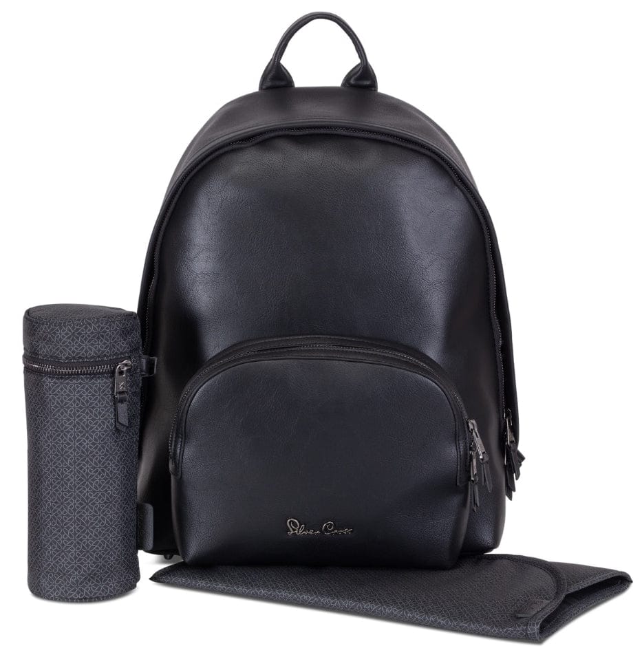 Stroll in style with Silver Cross' Dune/Reef Diaper Bag. Made of Vegan Leather & to match both Dune and Reef strollers. featuring 3-D sculpted fabric & rose gold detailing. Crafted from Vegan Leather to match both Dune and Reef strollers, this diaper bag is practical and perfect for mom or dad. The back-pack design leaves you handsfree to navigate your day. A changing mat and thermal bottle holder are included, with plenty of space to store those baby essentials.