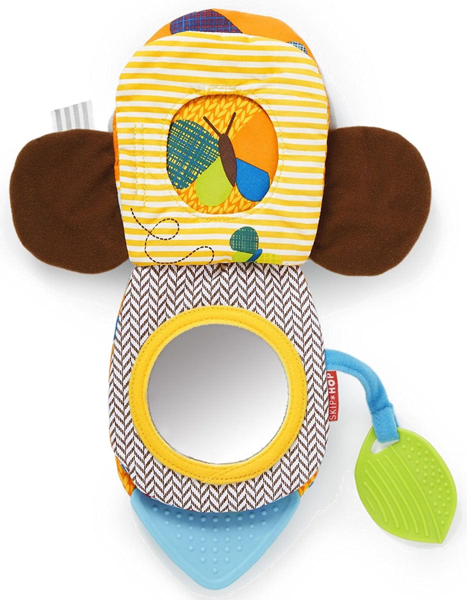 - Activities include: baby-safe mirror, peek-a-boo windows, crinkle fabric and squeakers