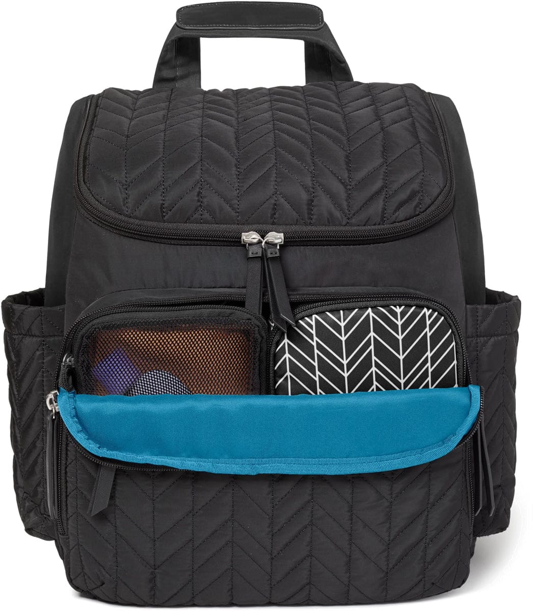 This lightweight, quilted backpack offers hands-free convenience and special packing cubes for baby's essentials. The spacious interior has room to tote everything from snacks to spare outfits and the extra wide opening makes it easy to find essentials in a pinch. The front compartment includes 2 multi-purpose packing cubes and allows for extra storage. Everything stays in reach with elasticized interior pockets and insulated side bottle pockets. The changing pad pocket performs double-duty, acting as a laptop holder when traveling. With the Forma backpack, function meets fashion to take you from birth to toddlerhood and beyond in style.