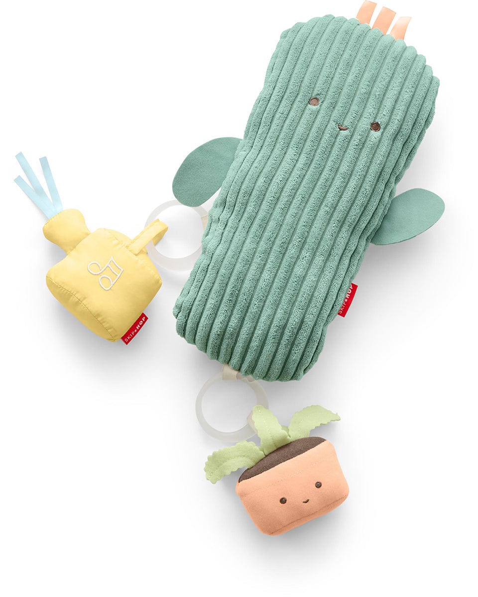 Introduce baby to all things green with our comfy garden-themed activity gym. Featuring a soft quilted mat with multiple textures, we also included a supportive cactus for tummy time play. Packed with 17-plus developmental activities, five adorable nature-inspired toys engage baby’s senses with music, sounds and more to explore.