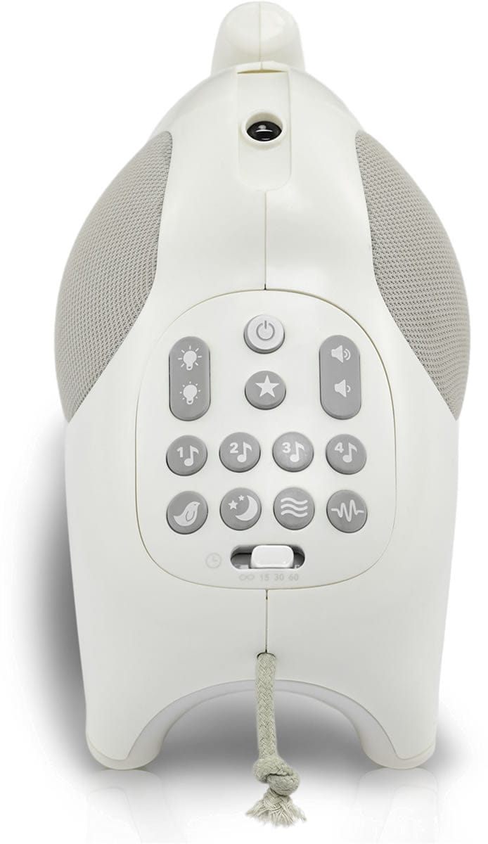 - Plays four melodies (Eine kleine Nachtmusik, Twinkle Twinkle Little Star, Brahms Lullaby, Rock-a-bye Baby) and four nature sounds (Rainforest, Jungle crickets, Waves, White noise with heartbeat)
