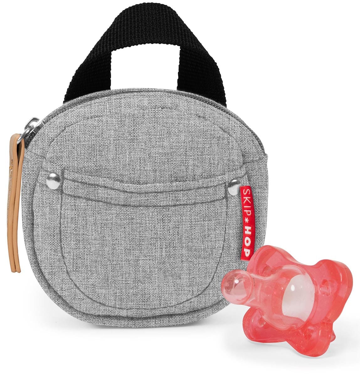 Our Pacifier Pocket holds up to two pacifiers and keeps them clean and handy. The Agion antimicrobial-protected lining helps reduce odor-causing bacteria. With its convenient strap, you can attach it to your stroller, diaper bag or anywhere else to keep your pacifiers within arms reach. The zippered closure includes a small front pouch.