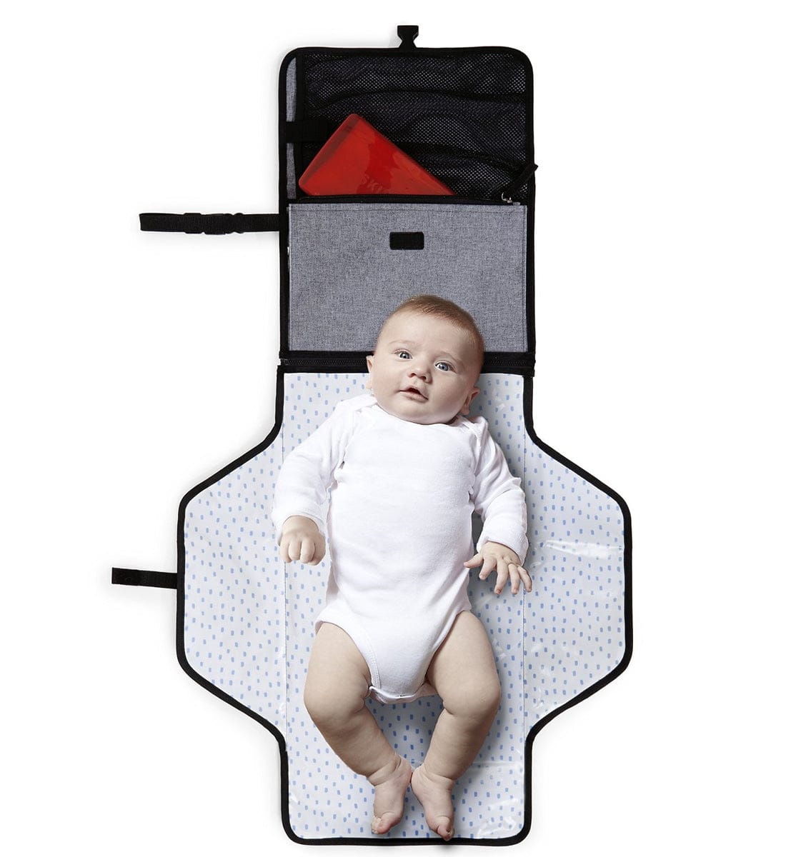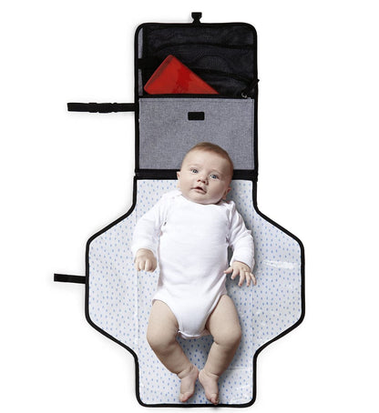 Its extra-wide changing pad wipes clean, and the head area is cushioned with an innovative "pronto pillow." The pad is also removable, allowing the body to become an independent diaper carry-all. The Pronto also includes a translucent wipes case, a mesh pocket that fits up to four large diapers and ointments, and a front zipper pocket for personal items.