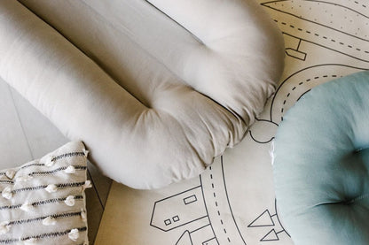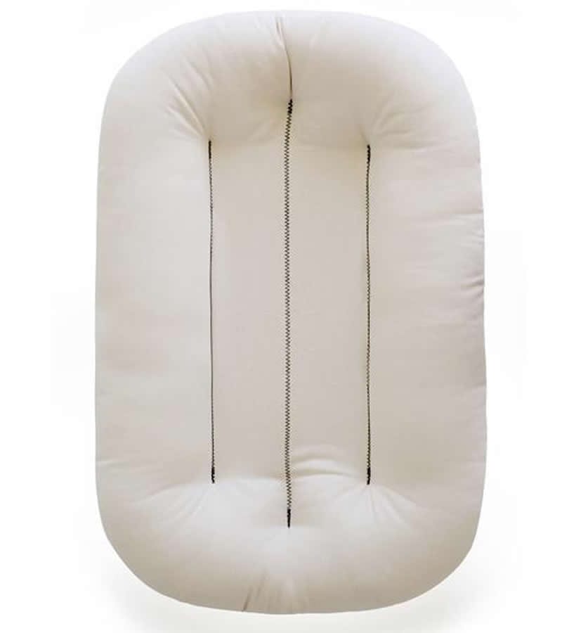 We are in love with the idea and quality of organic, USA-made baby items. We entrust local, Minnesota seamstresses and fillers with the crafting of each Snuggle Me® Lounger. Made with organic, non-toxic, breathable, and hypoallergenic fabrics. Filled with polyester fiber fill for a fully machine washable lounger.