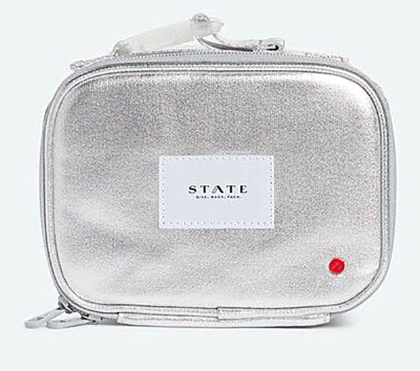 - A variety of snacks, a kid's sized water bottle, and an apple