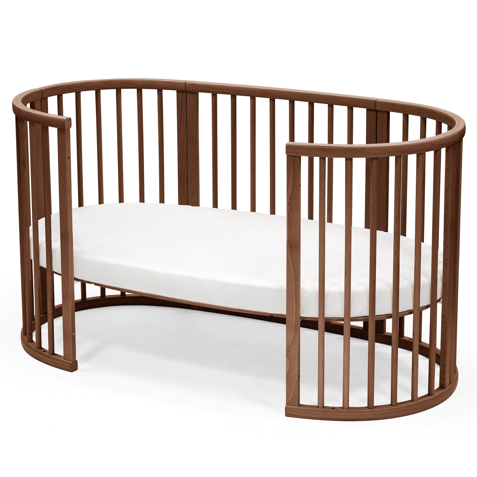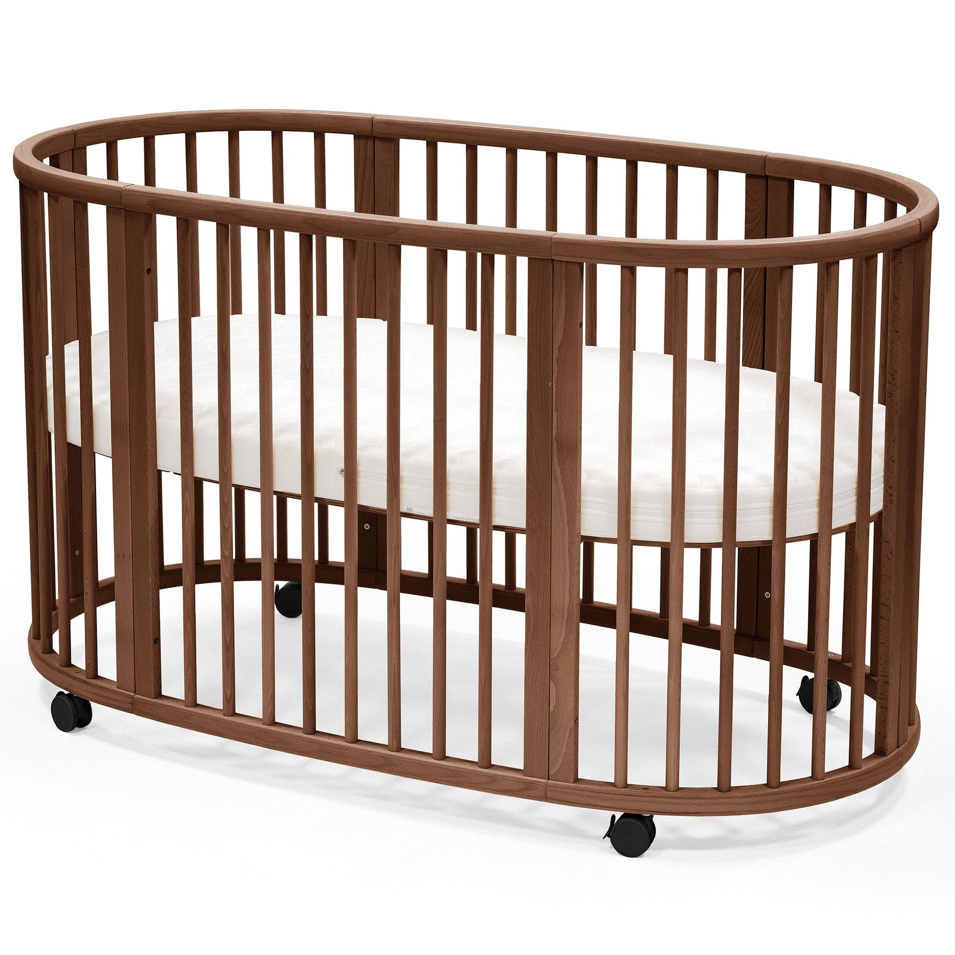Your baby's crib is the heart of your nursery. It should be beautiful, functional and above all, safe and soothing for your little one. Made of solid European beech wood, with adjustable height, Stokke® Sleepi™ accommodates the changing needs of your growing child. ? Soft oval design cocoons your baby offering comfort and familiarity for restful sleep and the sweetest of dreams. Stokke® Sleepi™ Bed can be used from birth to 5 years so your child can enjoy their bed throughout childhood. ? Adjust the height position of the mattress as your child gets bigger and reaches the curious climbing stage. Once your child is old enough to get in and out of the bed on their own, you can remove the wheels and one side of the bed for easy access. This will boost your child’s independence as well. ?The Stokke® Sleepi™ concept has been developed with sound sleep and safety in mind. It is available with a new firm and breathable Sleepi™ mattress which exceeds the highest safety standards (sold separately). Accessorize with the breathable mesh liner and high-quality textiles.?