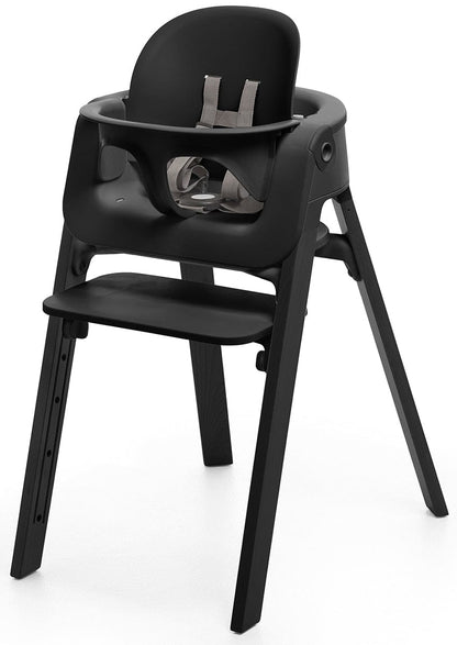 Optional accessories transform the Stokke® Steps™ Chair into a seating solution that can be used from birth with the Bouncer, bringing your newborn to the table and with the Stokke® Steps™ Baby Set to create the highchair.