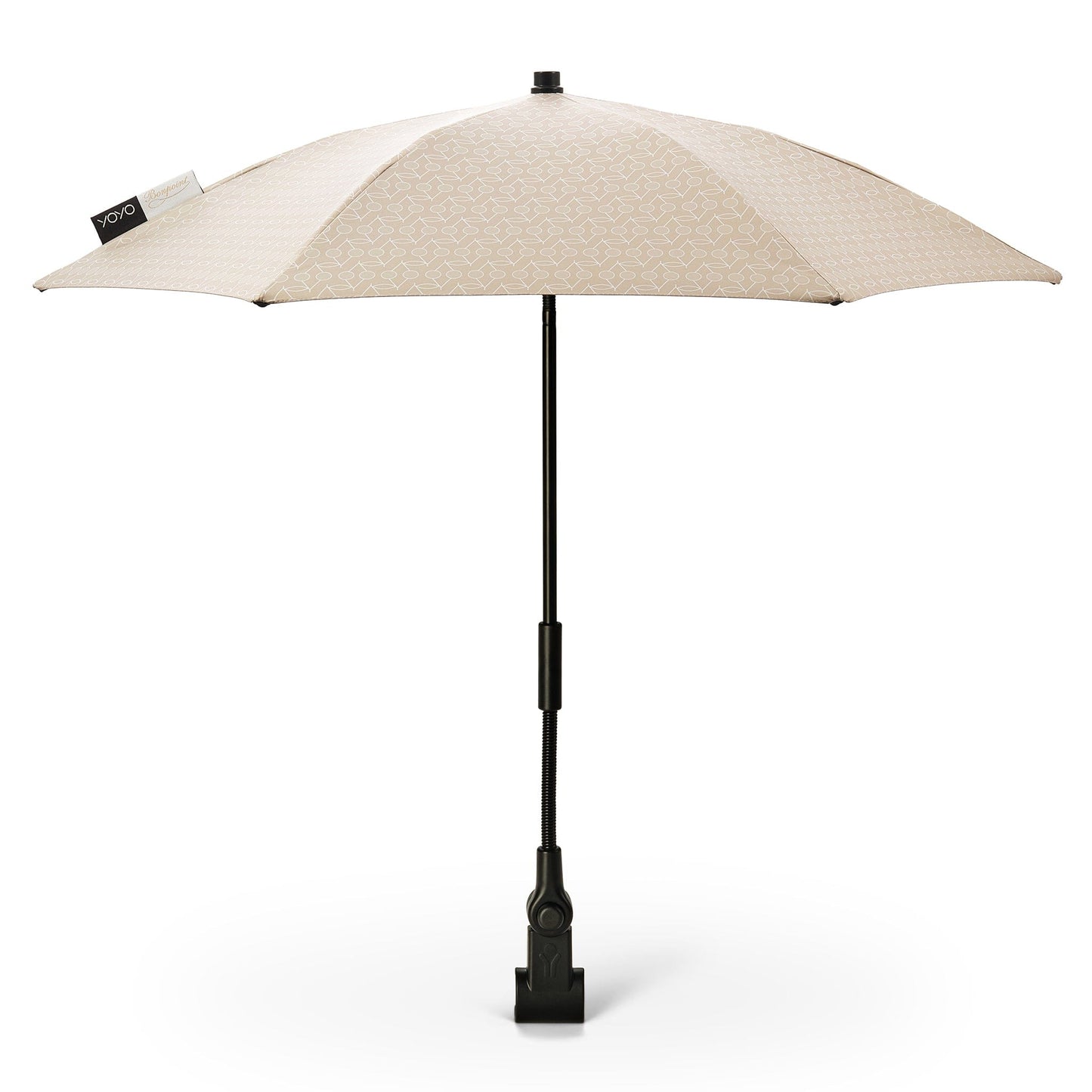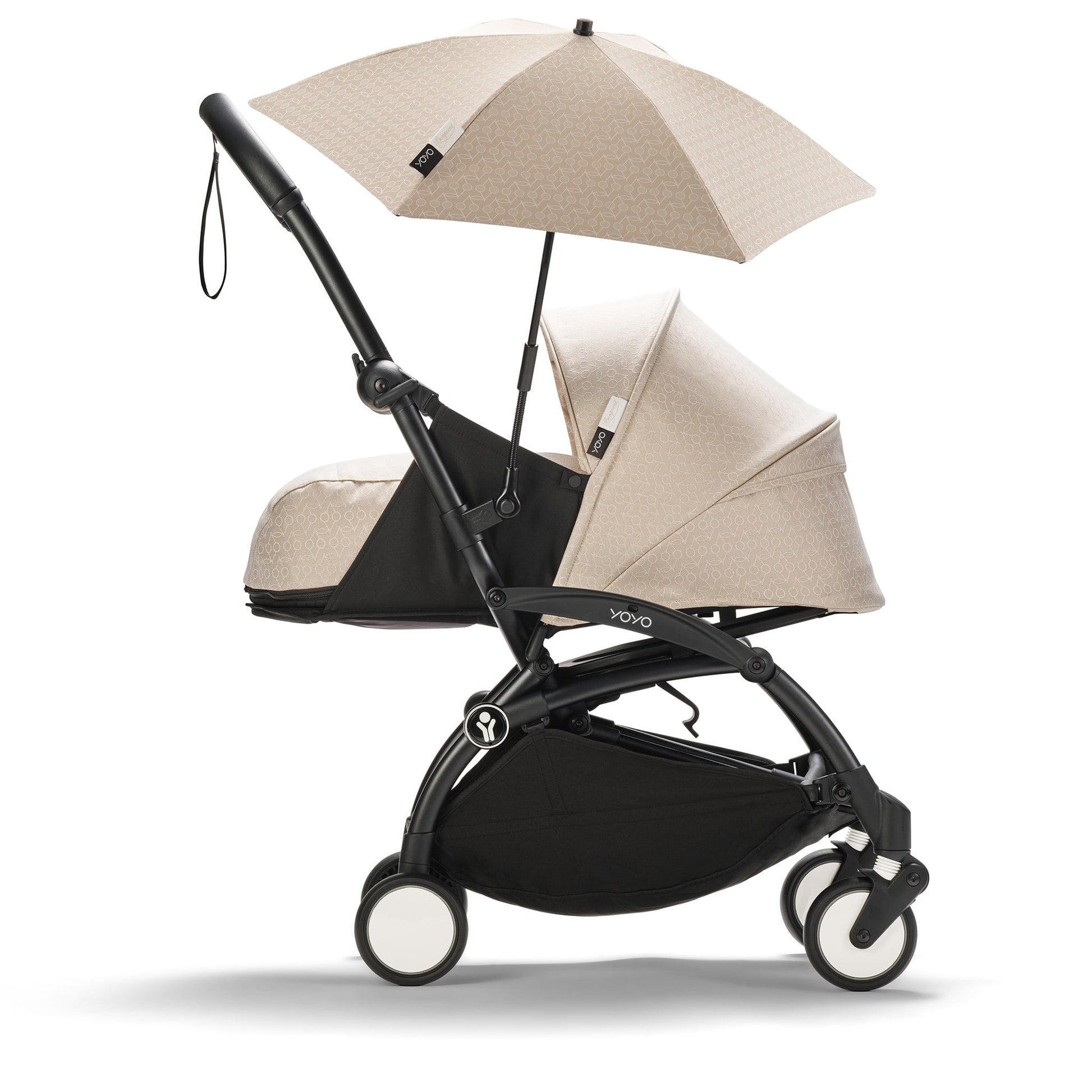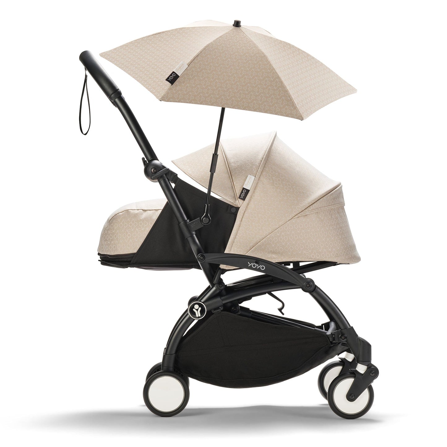 The parasol adapts to all versions of YOYO (newborn pack, bassinet, YOYO car seat and 6+ pack) and can also clip onto the car seat. With UPF 50+ protection and enhanced opacity, it protects your baby from the sun more effectively than ever.