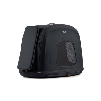 - Outer shell is reinforced with a durable material surrounded by a protective fabric layer designed to withstand the wear and tear of pet travel.