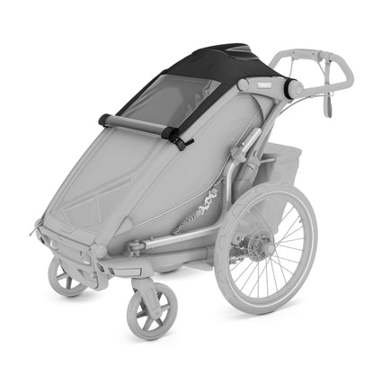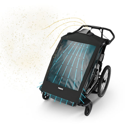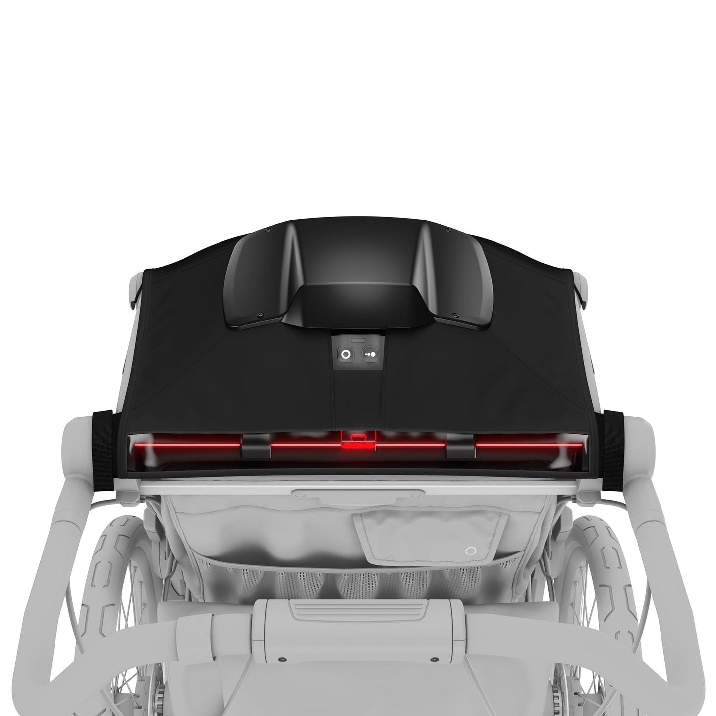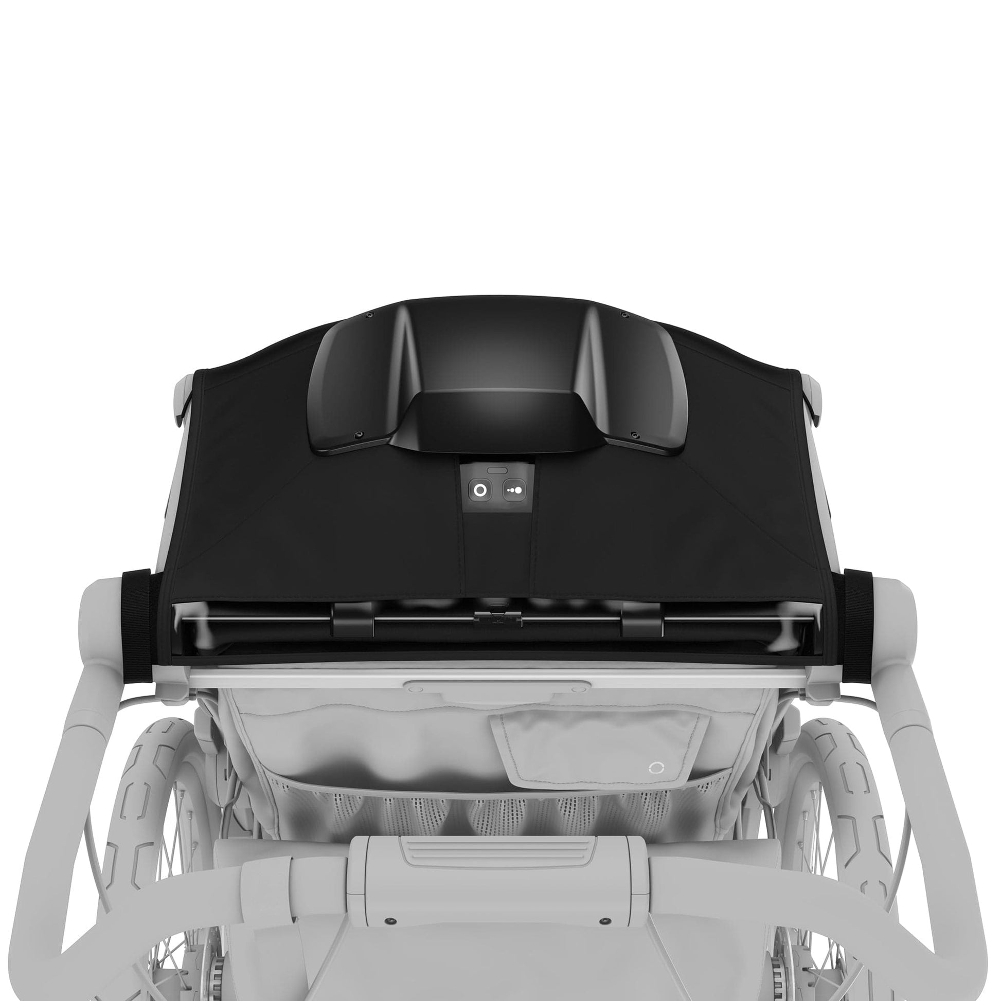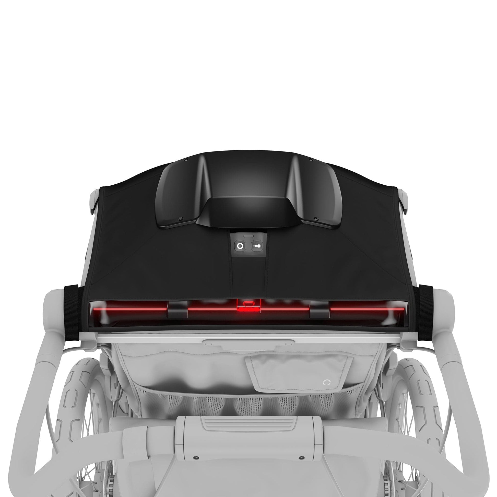 The Thule app helps you keep track of the air quality inside the canopy as well as the air around you. It also reminds you to change your EPA filter when it’s time for it to be replaced. Even without the app, though, the canopy can be turned on and fan speed can be adjusted. Replacement EPA filters for Thule Chariot Air Purifier Canopy are available on thule.com.