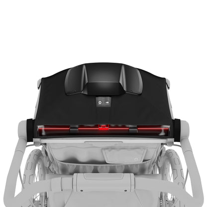 A fan located at the back of the canopy draws in air, filters it, and then gently pushes it into the bike trailer. The highly efficient EPA filter captures up to 90% of harmful polluting particles, as well as viruses, bacteria, and pollen. This ensures the air that enters the bike trailer and surrounds your child is clean and purified.