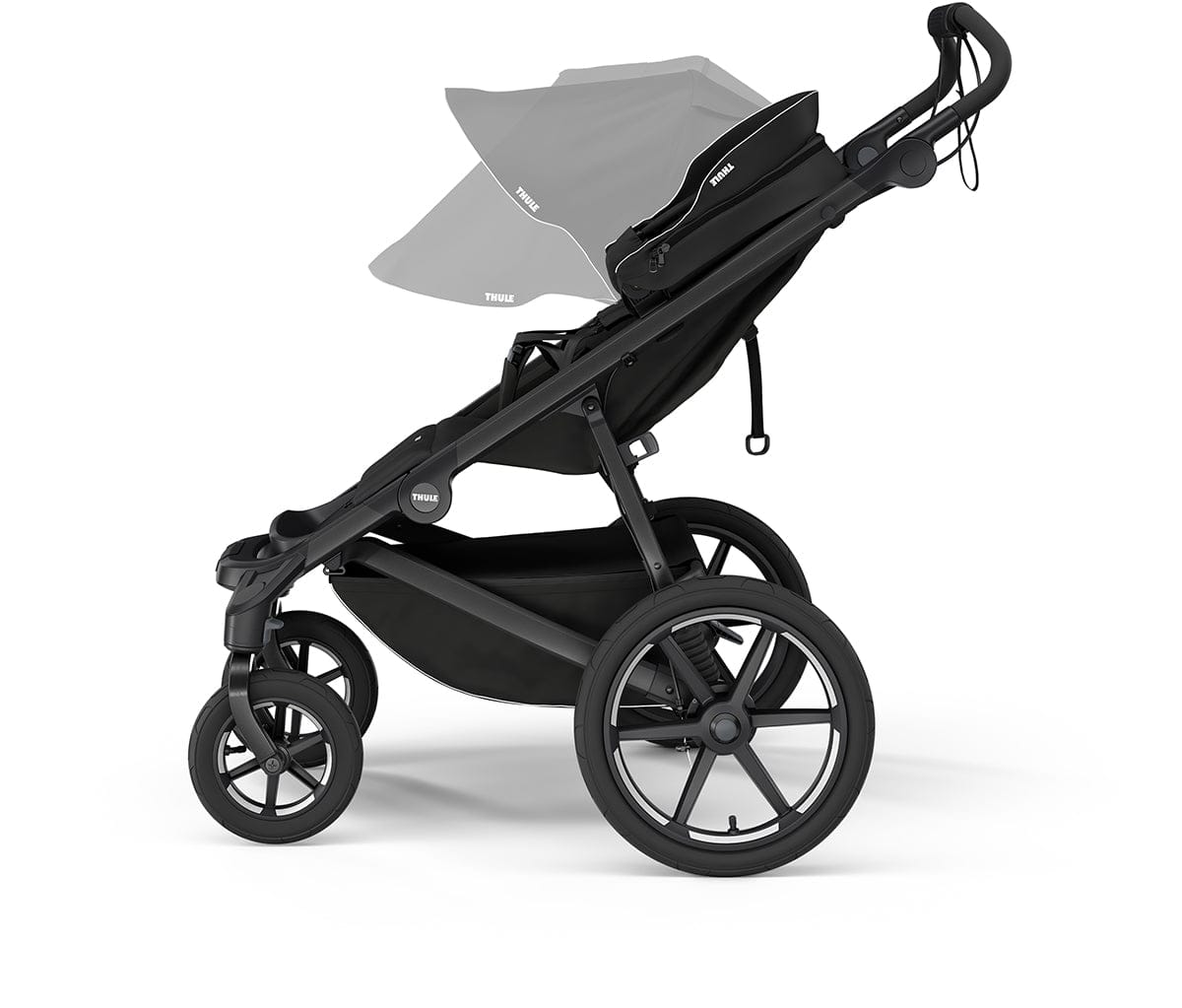 - Ergonomic, adjustable handlebar for maximum parent comfort