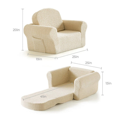 This charming toddler chair is more than meets the eye! It magically transforms from a comfy chair into a soft mattress, perfect for all sorts of fun. Whether your little one wants to sit and read, lay down for a nap, or just lounge around, this versatile piece has them covered for every adventure.