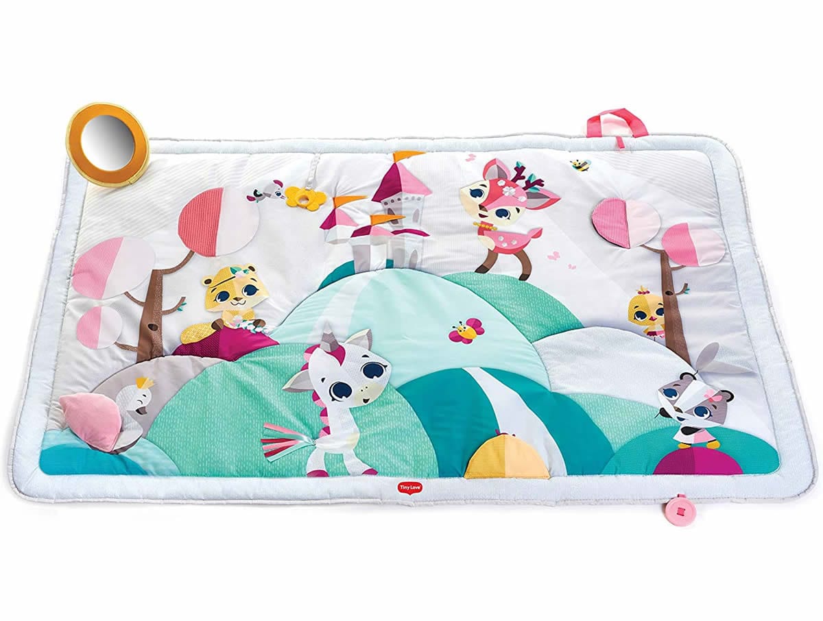 - Extra Room For Fun: The extra-large play mat features a playground of fun developmental activities and discovery for baby, all built onto comfy, plush padding to keep baby and parent comfortable.