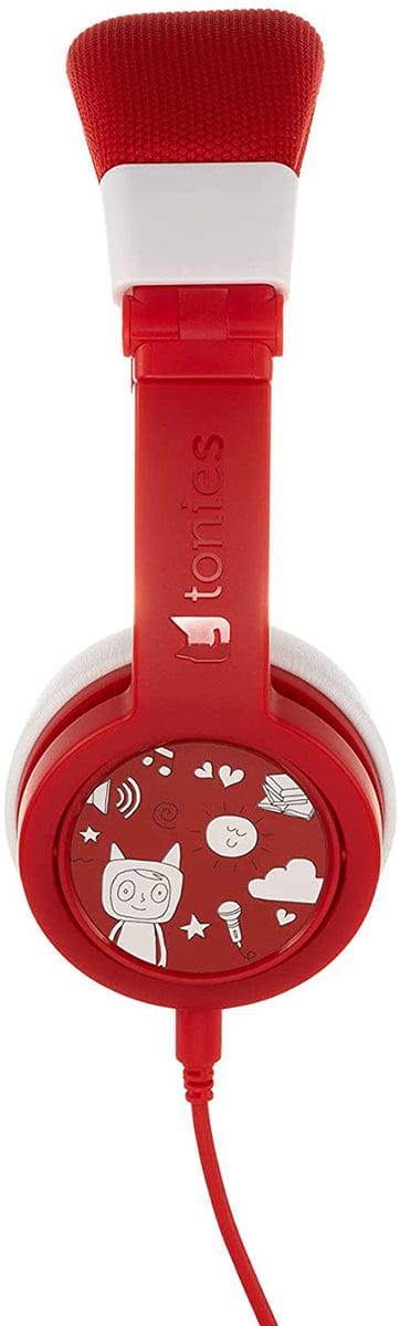 Meet the Tonies Headphones! These foldable, durable, kid-safe, volume-limiting headphones come in six colors to match your Toniebox. Each headphone set includes a matching sticker set and a detachable audio cable with a BuddyJack splitter for sharing storytime with up to four sets of headphones from a single Toniebox.