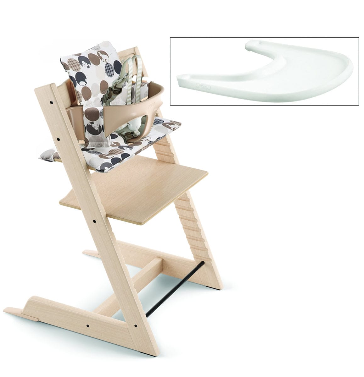 Tripp Trapp High Chair and Cushion with Stokke Tray - Natural / Silhouette Black