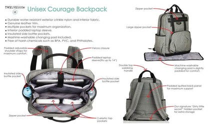 TWELVElittle Unisex Courage Backpack Diaper Bag - Grey/Navy