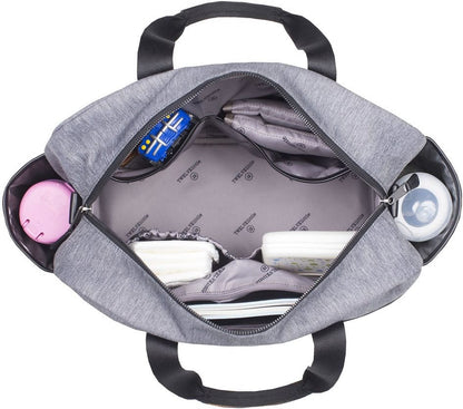 A unisex tote designed for both moms and dads that are style conscious and frequently on-the-go. Our exclusive bottom hidden zipper pocket allows parents to quickly take care of dirty diapers and clothes, and the interior padded tech sleeve provides protection for all handheld gadgets. The tote can be worn over the shoulder or as an cross body with the adjustable long strap.