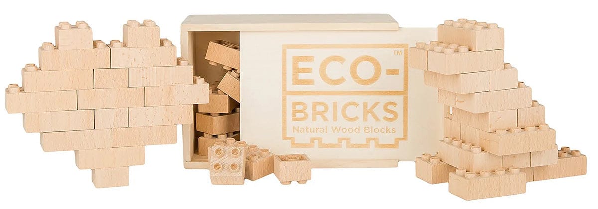 Eco-bricks™ Plus are twice the size of our traditional Eco-bricks™ and are made from FSC certified sustainable wood, biodegradable, and a renewable resource. The wooden blocks are 100% compatible with both plastic blocks and traditional Eco-bricks™ (so you don't have to start your whole collection all over again).