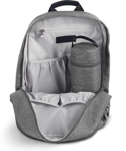 On your back or on the stroller, store all your on-the-go needs in UPPAbaby's chic Changing Backpack. Its premium fabrics and leather detailing coordinate beautifully to your UPPAbaby stroller, while adjustable straps and multiple storage compartments help you gear up and head out in style.