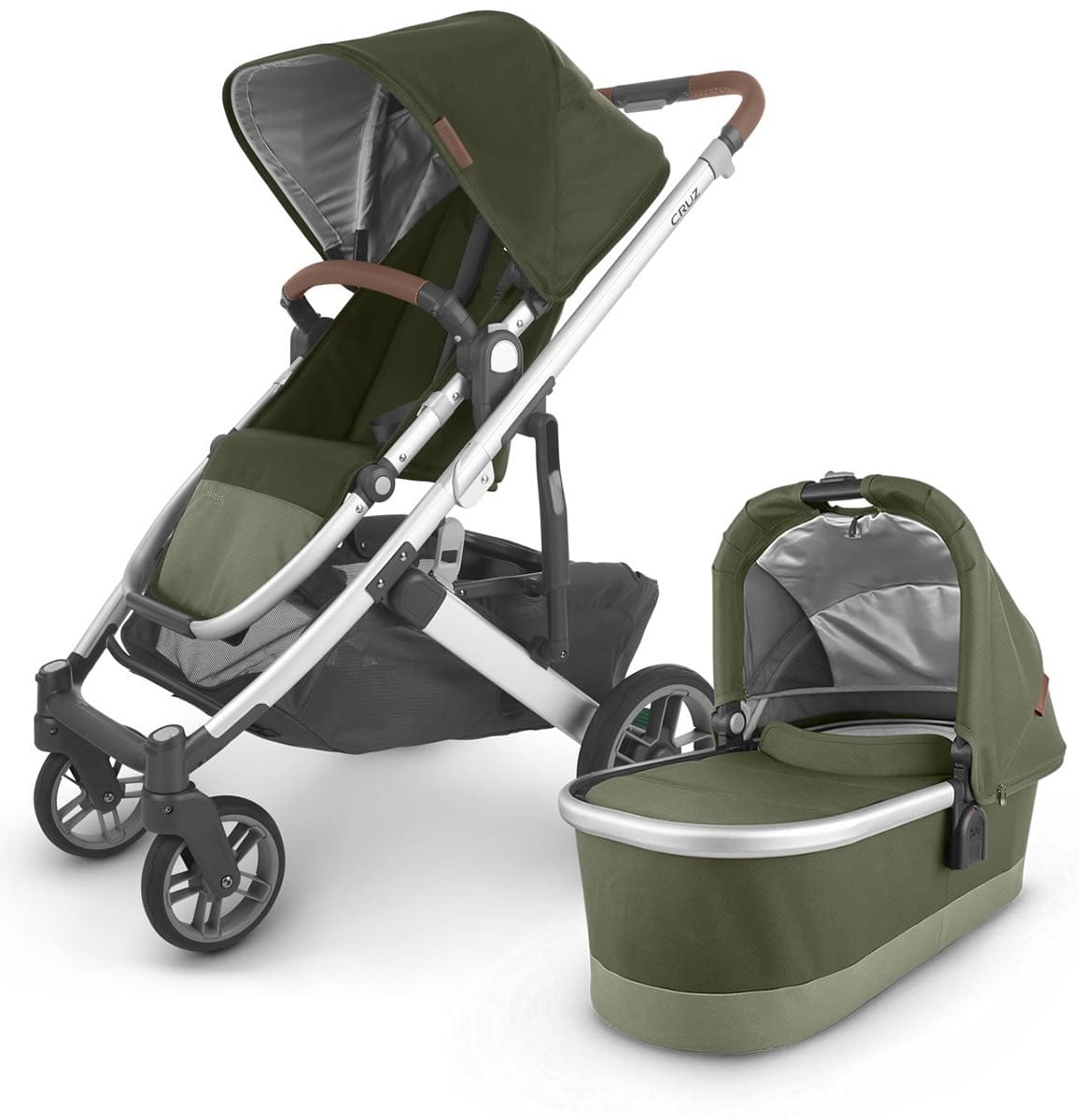 UPPAbaby Cruz V2 Stroller + Bassinet - Hazel (Olive/Silver/Saddle Leather)