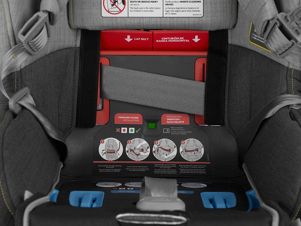 - SMARTSecure® System with red-to-green tightness indicator provides visual confirmation the car seat is installed correctly