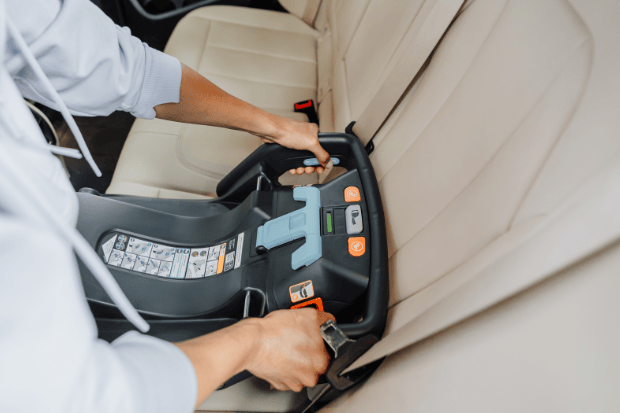 - Built-in lock-off for secure seatbelt installation