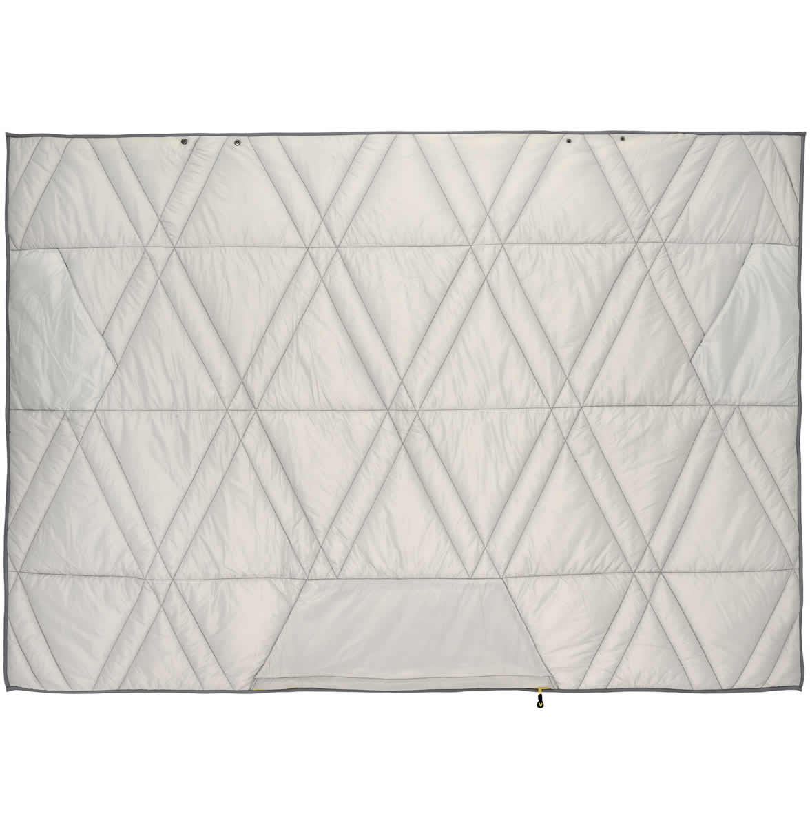 When your adventure is chilly, wrap-up in this cozy quilted puffy blanket. Light-weight, wind-proof, water-resistant and warm it is constructed of 100% 20D performance nylon wrapped around down-alternative insulation. Snaps and hand pockets make for an easy wrap that stays put. Stuff in built in zipper pocket for a pillow.
