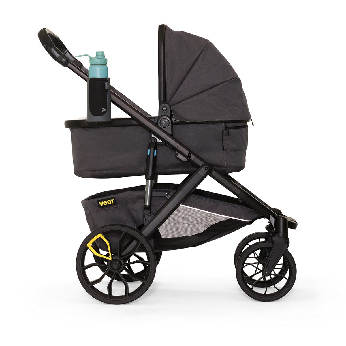 Keep your phone, keys, water bottle all within reach. The Catch All XL can be secured to any Veer Cruiser, &Roll, and &Jog at any of the fixed attachment points. Additionally, the bottom of a Catch All's can be secured to a handle with an elastic loop to prevent swinging if desired. The product is constructed of durable tarpaulin and a neoprene-like material that give it water-resistant and insulating properties.