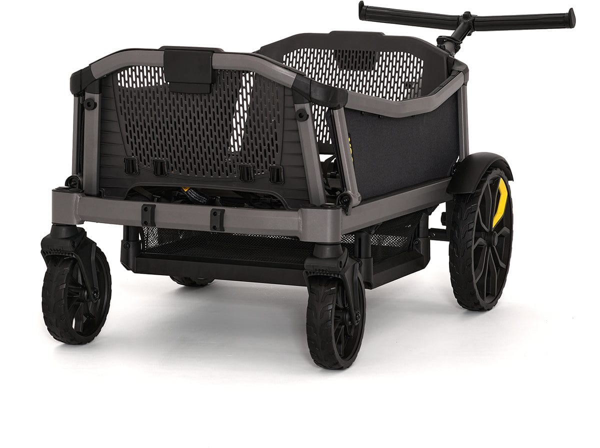 Cruiser City XL gives your family the fun and all-terrain versatility of a Cruiser but offers push steering and ample kickspace of a traditional stroller. Cruiser City XL is perfect for families that love to push on sidewalks, paths and through local attractions with seating for 4. Cruiser City XL features swivel wheels furthest from the handle, which enable it to be steered like a traditional stroller when pushing on smooth terrain. But don't worry, the handlebar can also drop into wagon mode for pulling over uneven terrain.