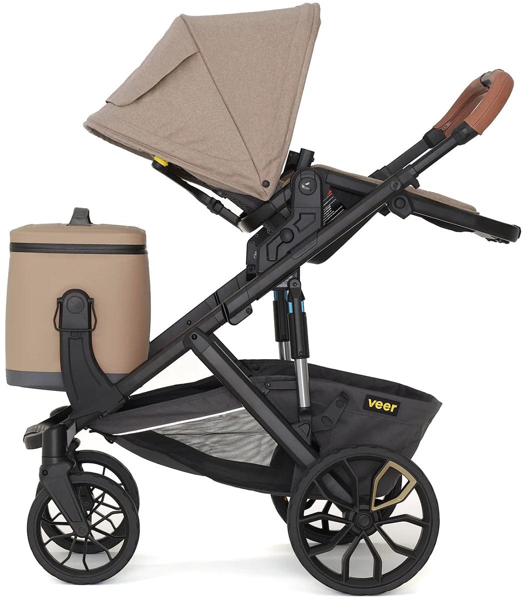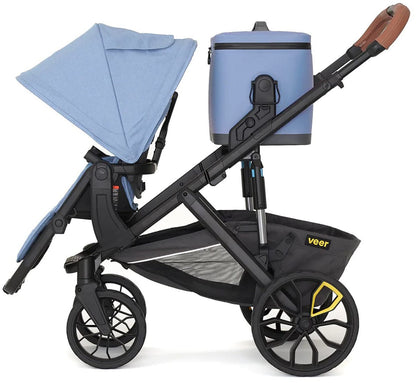 Triple the size of our Lunch Cooler, this 18 liter soft cooler is large enough to pack multiple meals, snacks, and drinks for the entire family, yet lightweight and easy to carry by its handle or padded shoulder strap. Veer’s patented quick release Switchback hubs allow you to quickly snap onto &Roll, &Jog, &Bike, &Chill or Cruiser and snap off by lifting the shoulder strap or handles. Side handles lock the cooler in place when flipped down, and unlock when flipped up.