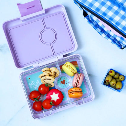 - Perfect Easy Packed Snacks: Packed snacks looks appetizing in Yumbox Snack box and encourages your kids to eat more fruits and veggies. To keep contents cool, place Yumbox Snack in an insulated bag and add an ice pack.