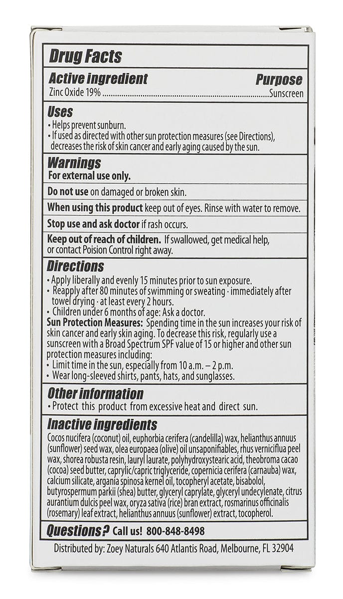 Zoey Naturals SPF 50+ Face & Body Stick - Fragrance Free